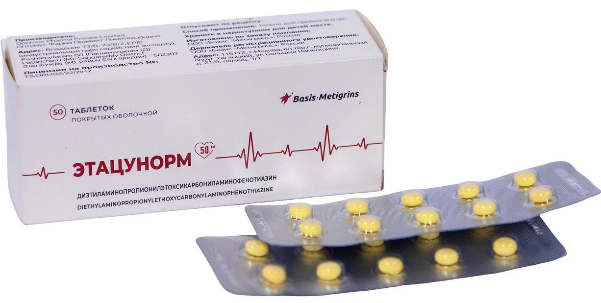 Действующее вещество: диэтиламинопропионилэтоксикарбониламинофенотиазин.