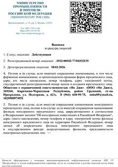 Предприятие работает на основании лицензии № Л012-00102-77/04332135 от 10 февраля 2026 года.